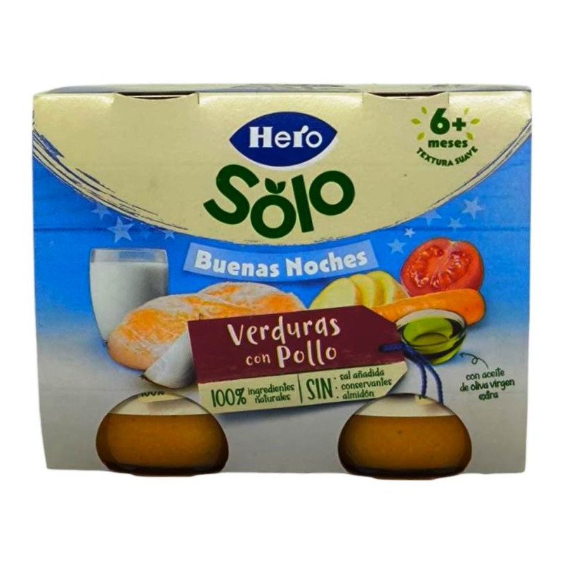 El potito hero buenas noches verduritas con pollo es un producto elaborado por la empresa Hero España, S.A., que pertenece al grupo Hero