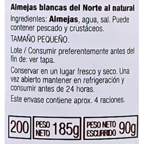 Los ingredientes de las almejas blancas del norte al natural son: