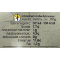 Ingredientes: Calamares (55%), aceite de girasol, tomate, cebolla, harina de arroz, especias, sal, fibra vegetal (patata y bambú)
