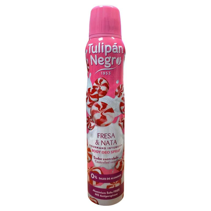 ¡Una delicia en forma de desodorante! El Tulipán Negro Fresa y Nata Spray es un body deo de 200 ml con un aroma dulce y cremoso que recuerda a los caramelos de fresa con nata .