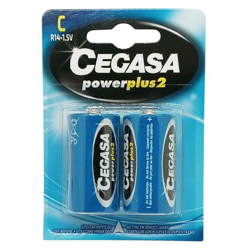 Las Pilas Cegasa C-R14 1,5V Pack de 2 unidades, ideales para dispositivos electrónicos como mandos a distancia, juguetes, relojes y otros aparatos de uso cotidiano .
