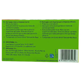 Doble cara: Suelen tener una cara de fibra verde más abrasiva para remover la suciedad difícil y otra cara de esponja más suave para limpiar superficies delicadas y absorber líquidos .