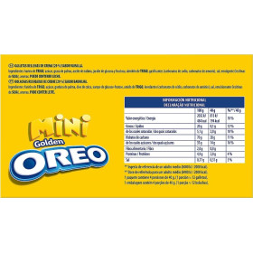 Ingredientes: harina de TRIGO, azúcar, grasa de palma, aceite de nabina, jarabe de glucosa y fructosa, almidón de TRIGO, gasificantes (carbonatos de sodio, carbonatos de amonio), sal, emulgente (lecitinas de SOJA), aromas.