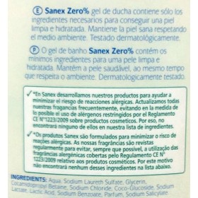 Los ingredientes principales del Gel de Baño Sanex Zero% son: