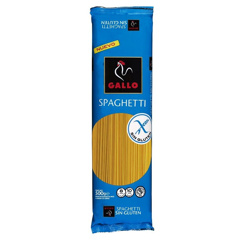Los Spaghetti sin gluten de Gallo son una pasta seca que está elaborada con harina de maíz y harina de arroz .