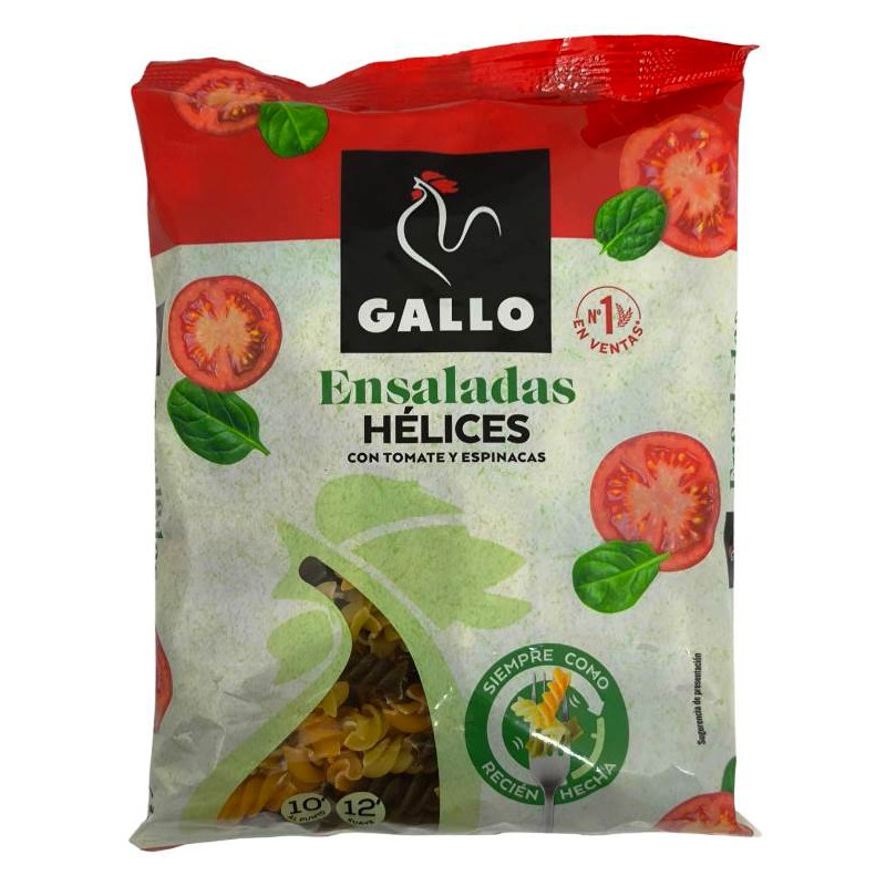 Las pastas vegetales Gallo se presentan en dos formas: plumas y hélices . Las plumas son ideales para ensaladas, sopas o guarniciones, mientras que las hélices son perfectas para combinar con salsas, verduras o carnes .
