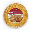Patata frita (50%) (patata y aceite de girasol), huevo líquido pasteurizado, cebolla frita(10%)(cebolla, aceite de oliva virgen y sal), aceite de girasol, sal, huevo en polvo, estabilizantes (E-407, E-410, E-415 y E-508), almidones modificados, maltodextrina, aceite de oliva y acidulante (E-330). Contiene huevo.
