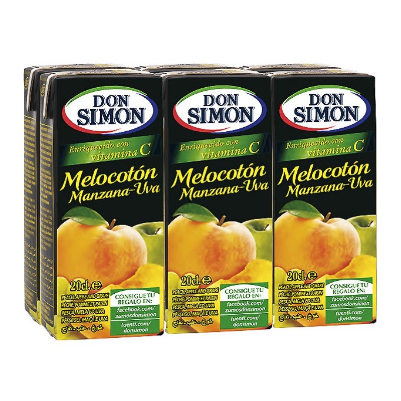 Contiene zumo de melocotón, manzana y uva parcialmente a partir de concentrado .