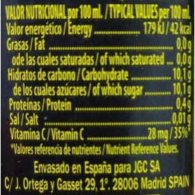 Puré de melocotón (55%), zumo de manzana a partir de concentrado, zumo de uva a partir de concentrado, vitamina C